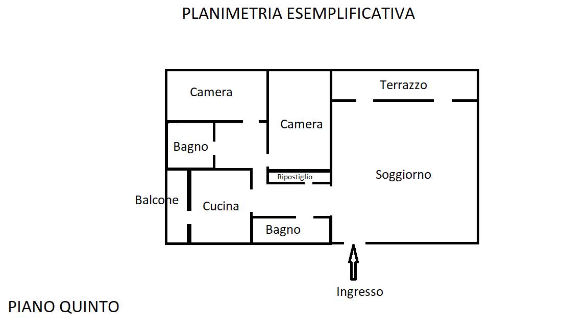 soggiorno, cucina, 2 camere (1 matrimoniale e 1 doppia), bagno con vasca idromassaggio, secondo bagno con box doccia, ripostiglio. Terrazzo accessibile dal soggiorno e balcone accessibile dalla cucina.