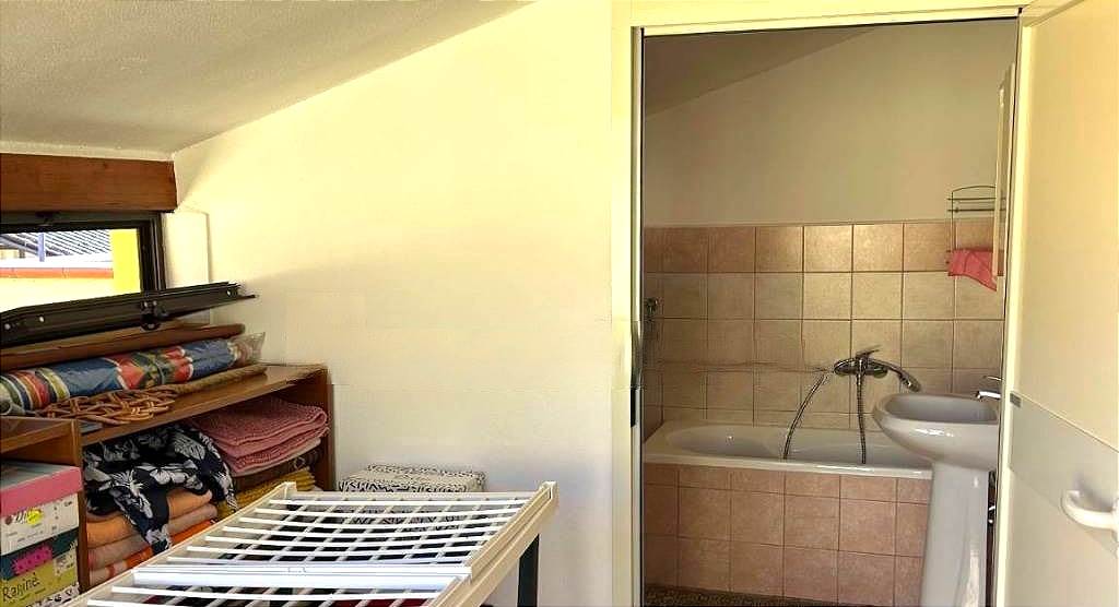 Al livello successivo si trovano una camera matrimoniale e un bagno con box doccia.