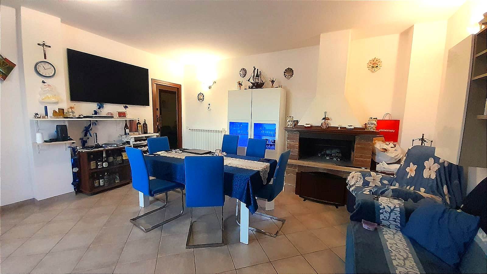 L’ingresso si apre su un soggiorno caldo e invitante, comunicante con una cucina semi-abitabile, perfetta per vivere la quotidianità con praticità.