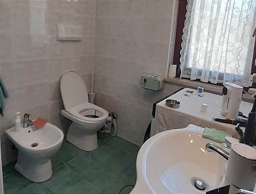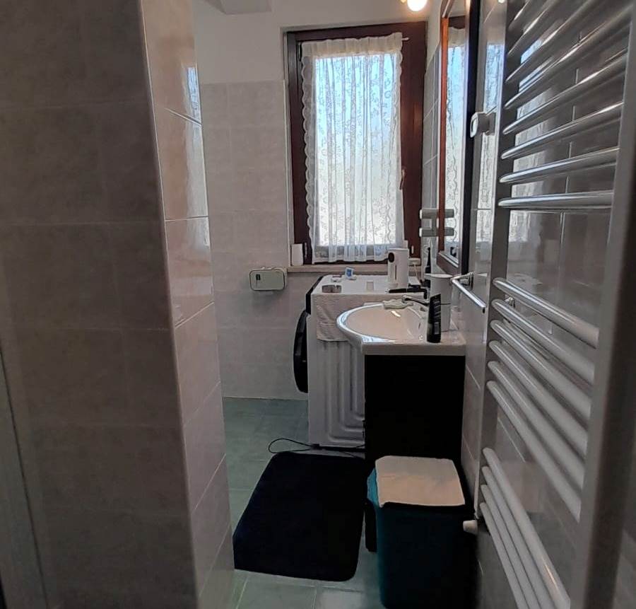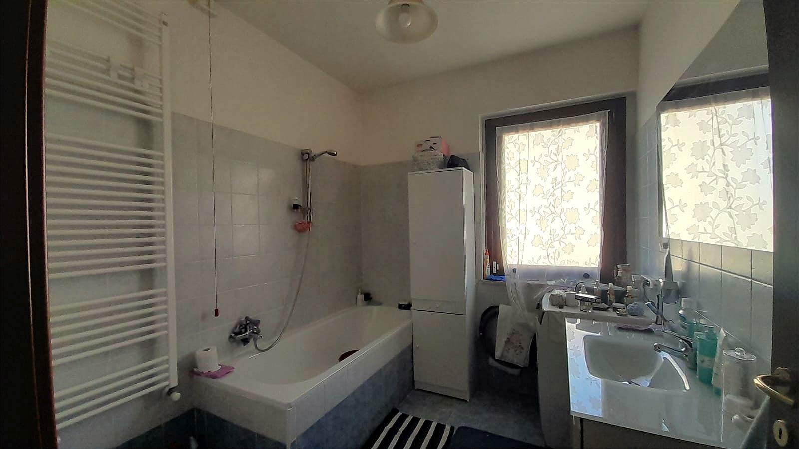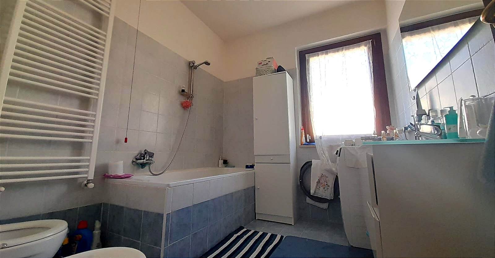 Vi sono poi due bagni, uno dotato di box doccia e l’altro di vasca, entrambi finestrati.